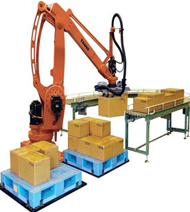 機器人碼垛系統(tǒng)是一種智能高效的碼垛機。隨著工業(yè)芯片技術上的發(fā)展及AI技術的進步,機器人的智能性已經代替人類的初步勞動,機器人碼垛機構靈活輕便,是工廠的明智選擇